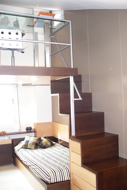 Podemos programar la zona de noche (cama) en la parte superior y la zona de día (vestidor, estudio, zona de juegos...) en la parte inferior o a la inversa.