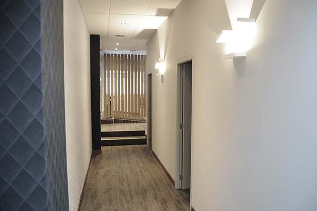 Un altre dels punts més importants del projecte era la il·luminació. Vam projectar una il·luminació amb sistema Led per reduïr el consum elèctric, combinant ulls de bou encastats a sostre i làmpares penjants per tal de enfatitzar la il·luminació a les zones de treball. A la zona del passadís vam utilitzar aplics decoratius de paret. La intenció era dotar d'una il·luminació més potent però alhora més càlida i suggerent.